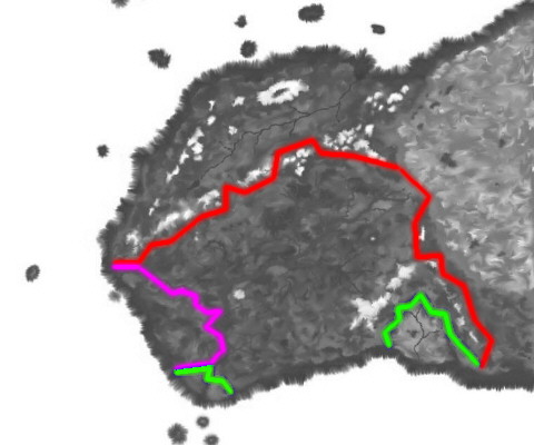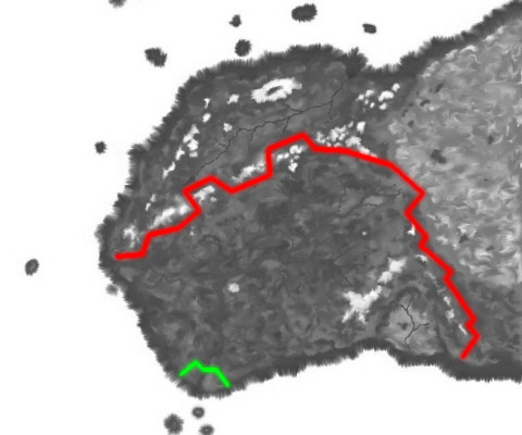 17th of Davor, 1329: Advance squadron of roc-hawkes establishes a defense in the Grand Maul Pass. The town of Takanal is advised of the situation that night, and begins to take up arms and prepare for the invasion. 2nd of Trivor: The Kur Maens invade Rakore on the pretense of stopping the invasion; in reality, they are merely continuing the Fourth Crusades, and attempting to extinguish the arcane in Rakore. They seize Teras in the hopes of pushing north, up the River Galanus, to Mount Rilan. The Kur Maens offensive border appears in green below. The Kur Maen force consists of 50 heavy triremes plus additional support vessels, and the landing forces those ships disgorge numbers over 50,000 troops -- paladins, clerics, priests, crusaders, holy warriors, and mercenaries from the holy city of Karmen. By this time, whole of the Tikranor plateau is under the control of the ograns.