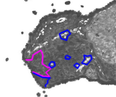 19th of Trivor: Kashin and Mount Lavanor are surrounded. Mount Rilan is surrounded. Mount Basilisk is surrounded, and holds the remainder of the Stonehelms; the Stonehelms maintain the illusion of the king still being present at Mount Basilisk, though in truth he has already fled with his court to Hallis Island (via the Eye of Galgiran). Lok Sadic holds with support from Wuron S'fa. A small part of the Warkore mountains is held by the Kur Maens, though they are surrounded. Significant strides are made against the Nabrolians, but they are already organizing for a counter-attack, and Teras itself is surrounded. Rakore appears about to die, after only 30 days of fighting. You don't see any red in the picture below, because the ograns Dominate Rakore; there's no point in showing it, painted in blood.