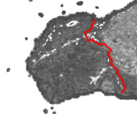 The idea for the Ogran Invasion occurred during the invasion of Iraq by US forces. What if My people were on the end of an invading force, against which we had no hope? What if it were My people going down in what was, to the enemy, a justified invasion? (chuckle) That wasn't really the idea, but it sounds good, in retrospect, and gets you to thinking. The idea for the Ogran Invasion came out of the Second Sister Worlds War. It's coming, and the God of Destinies is slowly forging Gaeleth into something harder and stronger. I began to wonder, how to temper Rakore into something even stronger? They had already weathered the War of the Undead, and I was having trouble figuring out how to make the War of the Churches happen. Back-planning wasn't too difficult. I'm devious. And as long as I'm invading Rakore, I might as well throw out all the stops, but... For years, the ograns were kept at bay by the Srik. Luckily for everyone, the Srik can only exist in a desert. So why would the Srik stop attacking? Or would the ograns finally have found a way to beat back the Srik? We did some thought experiments, and even considered invoking Mazripos, the Rot Goddess and the Goddess of Diseases, as a way of destroying the desert-only fungus that feeds the Srik. I don't remember why I decided against it, but perhaps the almost complete loss of Mazripos' power may have been a deciding factor. Since the ograns have turned to K'Tath and Samis, Mazripos has fallen so much from power that her only remaining followers are scattered tribes of orcs and ogres, here and there. Bah... I'm waxing philosophic, when what we all really need is the meat of the timeline. 16th of Davor, 1329: Prepositioned armies, moving under screens of illusions, prayers of deception, and misinformation from ogran double-agents, invade Rakore. A massive army slams into the Stonehelms' mountain range, and is blocked -- barely. A massive army slams into Loregard, and is blocked -- almost easily. Two massive armies slip through the northern ranges, make use of prepositioned caches of food and supplies, and marche forward almost unopposed. Image below shows Ogran forces' advance with the red border.